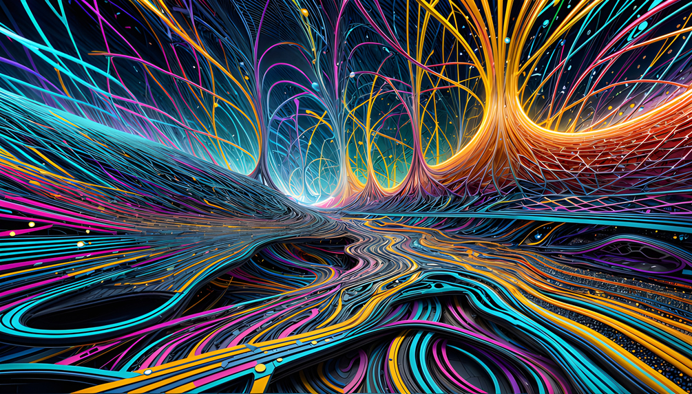 In my quest to explore the fusion of technology and consciousness, I was drawn to create an image that embodies the complex beauty of neural links. This painting, set against an abstract backdrop of digital circuits, captures the multicolor reflections of a futuristic essence. Each stroke reflects my fascination with the intertwining of our minds with the digital realm, symbolizing a journey into the unknown depths of human and artificial intelligence.
